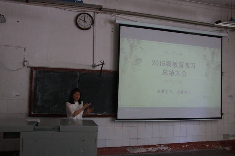 为了对2015级教育实习情况做一个系统而全面的总结,让同学们知道自己的不足并加以改正,7月6日上午,2015级教育实习总结大会在生物楼一楼阶梯教室举行,出席本次会议的有副院长王仁君以及指导老师张祥沛、郭春晓、李玉建。