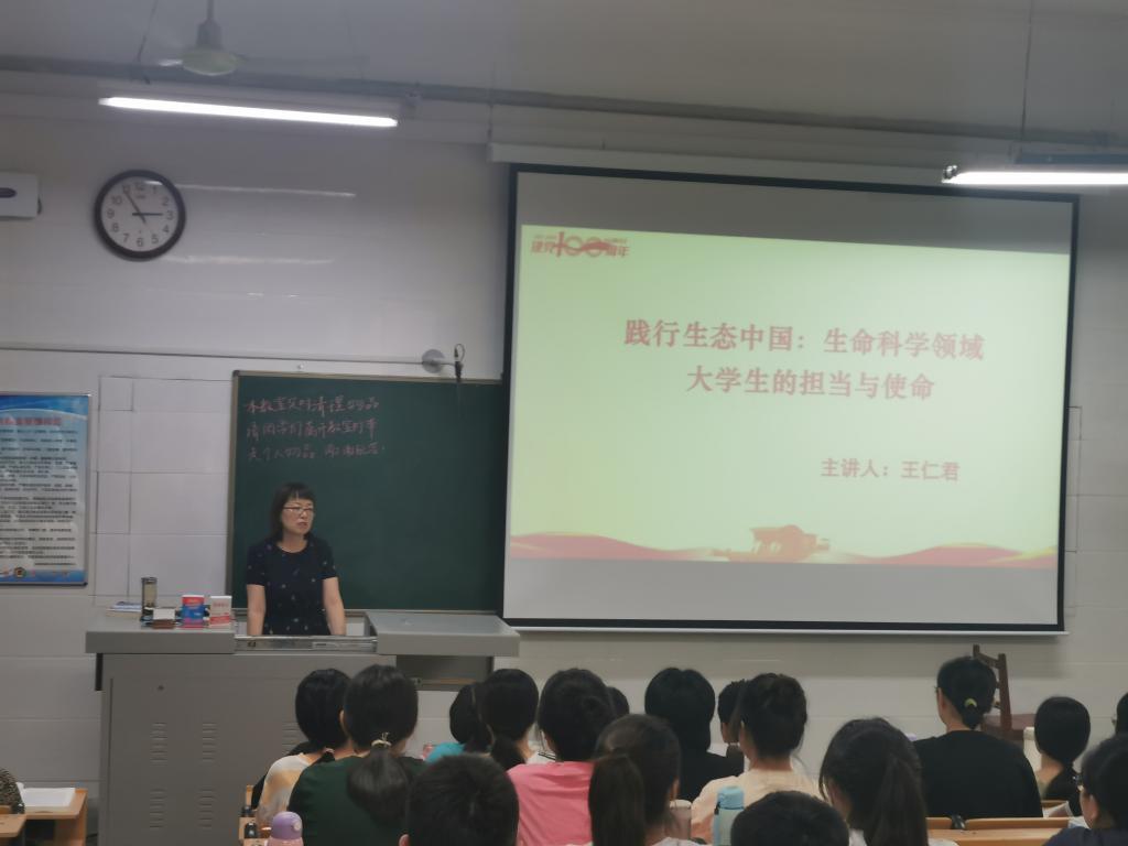 副院长王仁君以“践行生态中国:生命科学领域大学生的担当与使命”为题,让生科学子认识到生态意识的提高和生态文明的塑造的重要性,认识到作为生命领域大学生,肩负着开展好生态教育,传播生态知识和生态文化、提高人们的生态意识及生态素养、塑造生态文明的责任与使命,引导激励大学生积极投身到祖国的生态文明建设中来。