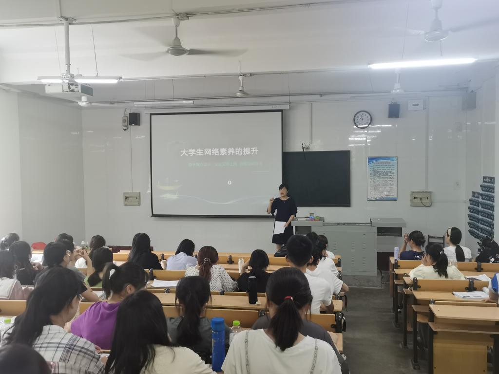 党委副书记张明洁以“大学生网络素养的提升”为题,运用大量真实网络案例,从网络传播特质、网民群体构成、网络意识形态领域的斗争等方面为同学们详细分析了网络环境的复杂性,引导带动学生一起思考正确使用网络的方法和路径,帮助学生树立在网络空间保持理性思考、明辨思维、独立判断、文明举止的行动理念。