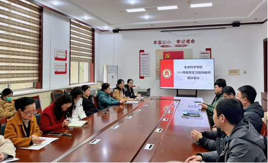 于2024年2月26日在生物楼208会议室召开2024年教育实习指导教师培训会议。会议由副院长燕艳主持,生物教学论教研室主任郭永峰、2021级生物科学专业辅导员及全体实习指导教师参加会议。