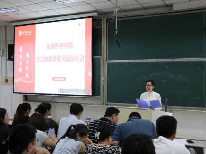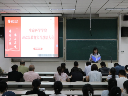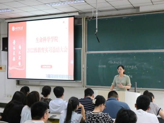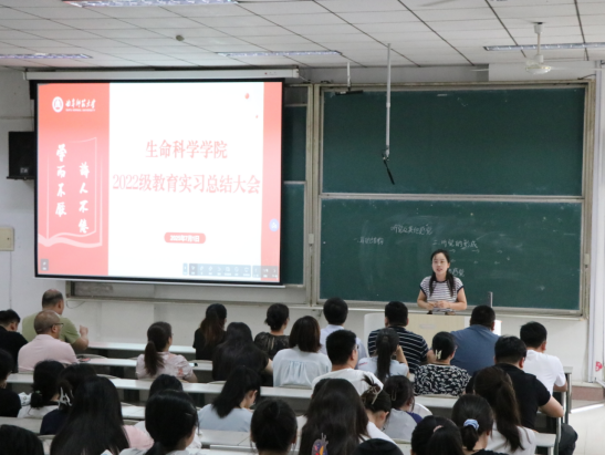 在综合楼106教室召开2025年教育实习总结大会,副院长燕艳、生物教学论教研室主任郭永峰、全体教育实习指导教师、部分辅导员以及2022级生物科学(师范)专业师范生参加会议。会议由辅导员刘文静主持。