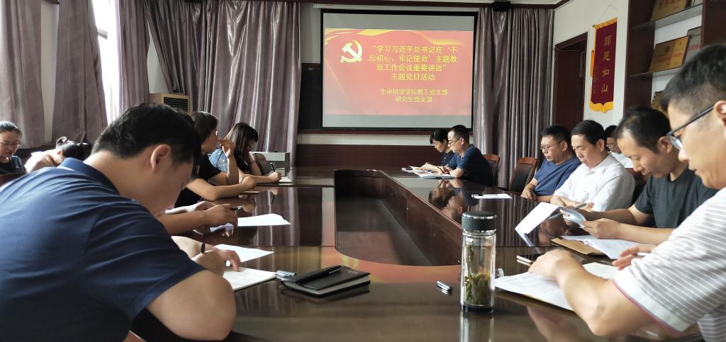 教工党支部和研究生党支部在生科院二楼会议室联合举行“学习习近平总书记在‘不忘初心、牢记使命’主题教育工作会议重要讲话”主题党日活动。