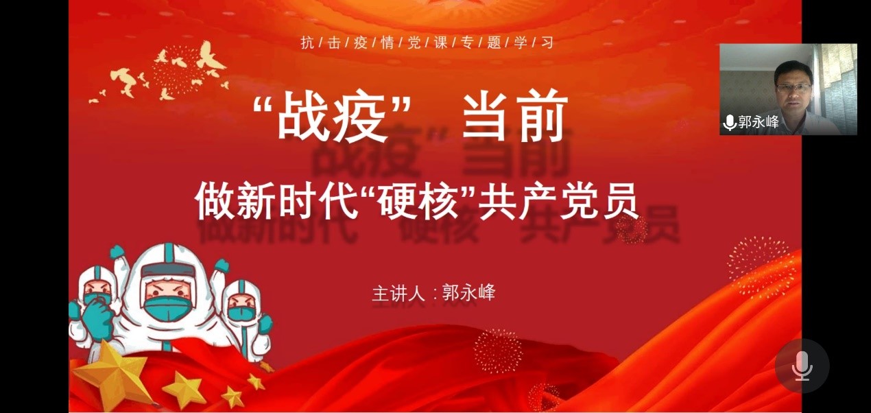 2020年7月8日下午,捷克论坛 教工党支部书记郭永峰为全体党员在腾讯会议上讲了题为“战疫当前,做新时代硬核共产党员”的党课。郭永峰围绕“透过战‘疫’的烽烟我们应当看到什么”、“对接战斗的过程我们应当做什么”、“直面未来的战场我们应该做什么”三个问题详细剖析了中国特色社会主义制度的优越性以及新时代共产党员的职责,切实提高了支部全体党员的“四个意识”、有效增强了“四个自信”。教工党支部全体成员参加了活动。