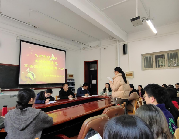 本科生党支部党员大会于生物楼223室顺利召开,会议由党支部书记刘文静主持,本科生党支部全体成员参加会议。