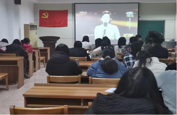 全体党员集体观看学习了《时代楷模发布厅》—“时代楷模”张桂梅先进事迹。张桂梅同志扎根边疆贫困地区一线教育40余年,帮助1800多位女孩走出大山走进大学,立志用教育扶贫斩断贫困代际传递,用爱心和智慧点亮万千乡村女孩的人生梦想。