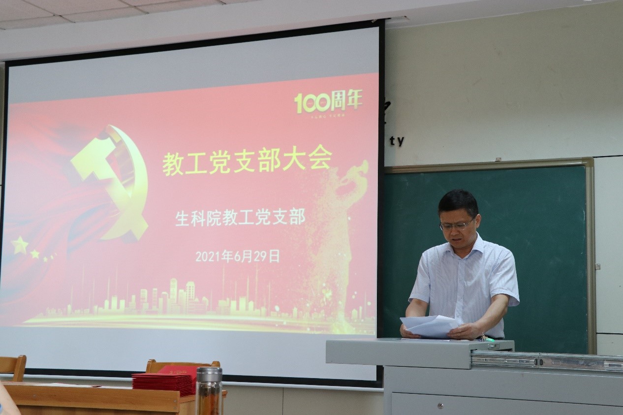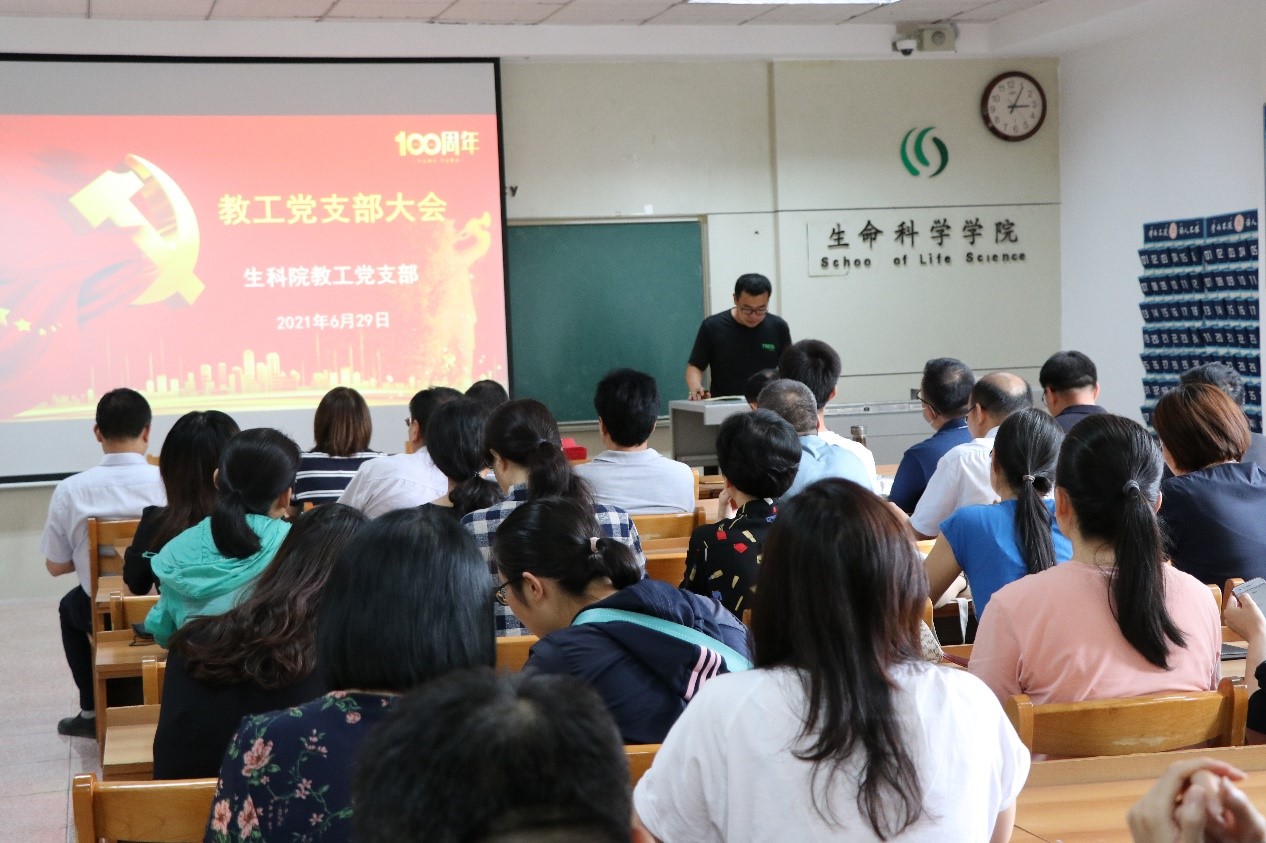 教工党支部全体党员大会在生物楼232会议室举行。会议由教工党支部宣传委员辛玉峰同志主持,教工党支部全体党员参加。