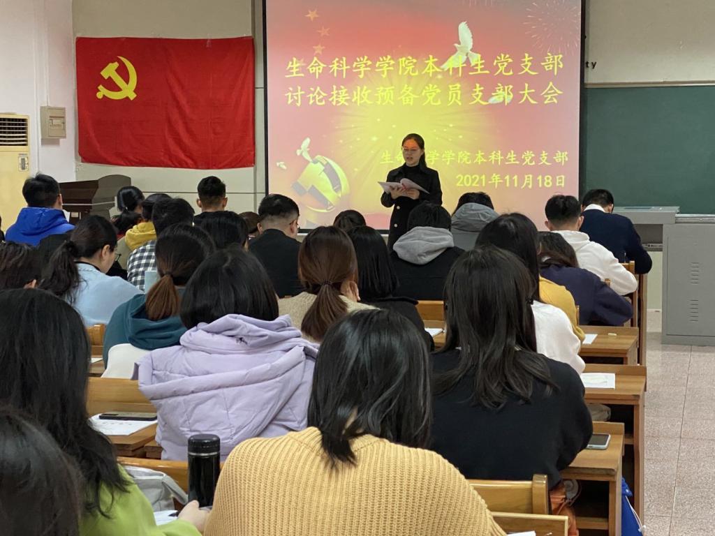 本科生党支部接收预备党员支部大会于生物楼232室召开,会议审议并接收王婧、蔡浩天等102名同志为中共预备党员的相关事宜。党支部书记杨申振主持此次会议。
