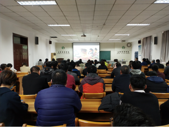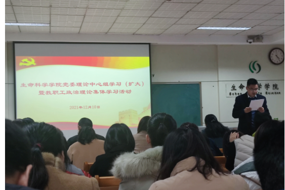 党委书记李志广主持学习活动,党委理论中心组全体成员、全体教职工参加学习会。