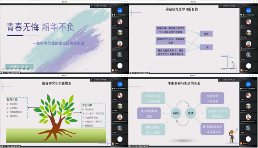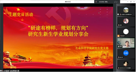 研究生党支部邀请优秀博士党员王超同志和优秀硕士党员徐迪同志开展了“研途有榜样,规划有方向——研究生新生学业规划分享会”线上主题党日活动。研究生党支部书记燕艳,全体研究生党员及全体2022级研究生新生参加了活动。研究生党支部副书记陈飞主持活动。