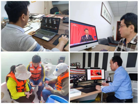 正在野外采样的秦海明老师团队坚持收看开幕会。他提到,习近平总书记在报告中强调“尊重自然、顺应自然、保护自然,是全面建设社会主义现代化国家的内在要求,必须牢固树立和践行绿水青山就是金山银山的理念,站在人与自然和谐共生的高度谋划发展”。作为生物科学专业的教师,要紧密结合教学科研实际,尽心为党和国家培养更多优秀的生态文明建设人才,努力为推动环境治理、动植物保护等科研创新贡献源源不断的新成果,真正把党的二十大精神落到实处。