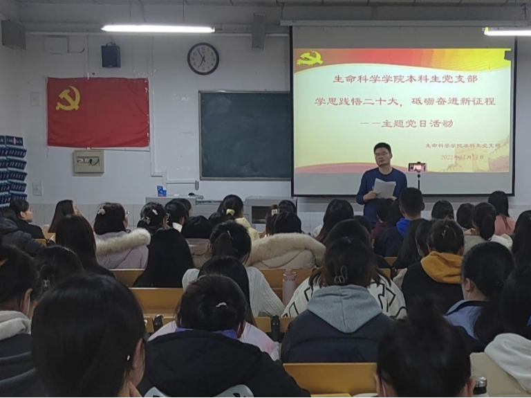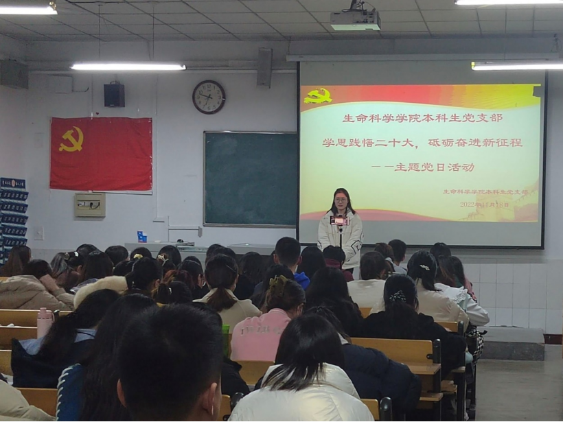 本科生党支部于2022年11月18日在生物楼332举办“学思践悟党的二十大,砥砺奋进新征程”主题党日活动。本次活动由党支部书记杨申振同志主持。