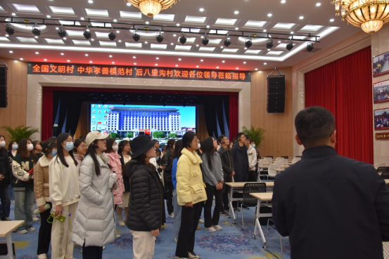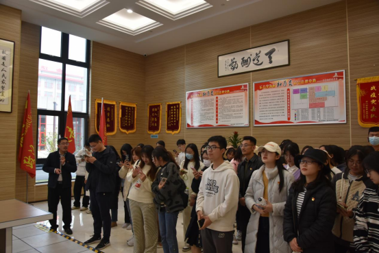 后八里沟村以“党建统领、孝德育人、产业惠民”的发展理念,走出了一条可推广、可复制的乡村振兴、共同富裕之路。寻访体验活动中,师生一行在工作人员的带领下参观新时代文明实践大课堂、观看村庄发展宣传片,初步了解到了这个村庄的文明实践之路。随后,成员们参观了北大新世纪学校、后八里沟村村史馆、为民服务综合楼,通过亲身体验,感受后八里沟村在党员干部的带领下从穷村乱村成长为“全国文明村”和村民“共富”村的美丽蝶变。最后,通过参观党史村史展览馆、观看村歌“孝德歌”,在场同学们进一步感受到了后八里沟村的孝善之风、学习之风、文明之风。
