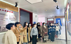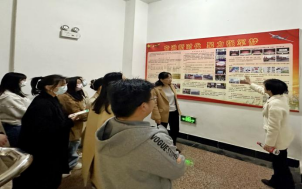 杏坛中学教工第三党支部书记赵莹莹对大家的到来表示热烈的欢迎,她首先介绍了杏坛中学国家级国防教育基地的基本情况,随后带领大家进行参观并细致讲展观内容。从抗日战争时期到解放战争、从改革开放到新时代中国特色社会主义,赵莹莹用生动的话语、饱满的情感,为大家层层深入了讲解曲阜乃至山东对各个时期中国抗战的影响,让大家全面、深刻的了解了曲阜在抗日战争时期作出的重要贡献。最后,赵莹莹介绍了毕业于杏坛中学的刘洪魁烈士,出征少年身,归来英雄魂,烈士英雄无私无畏、不怕牺牲的英雄气概感染着我们;胸怀大爱、一心为民的高尚情怀激励着我们。作为青年党员更应当把报效国家的满腔热忱化作苦练过硬本领的强大精神动力,以烈士英雄精神激励自己攻坚克难、奋勇前行。