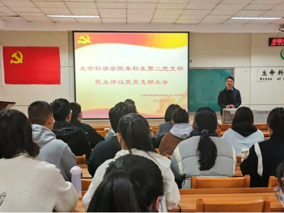 本科生第二党支部于生物楼232室召开民主评议党员支部大会。本次会议由第二党支部书记赵连栋同志主持。