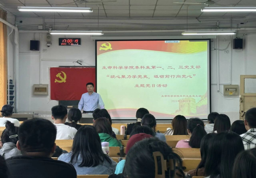 院本科生第一、二、三党支部于生物楼317室联合开展“凝心聚力学党史,砥砺前行向党心”主题党日活动。本次活动由本科生第一党支部书记杨申振同志主持。