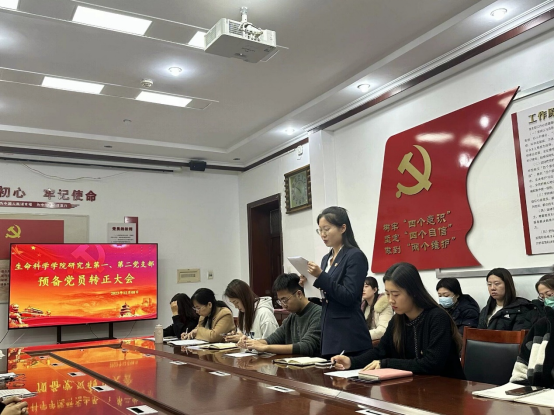 研究生第一、第二党支部联合开展党员支部大会,讨论田雪、付佳、何尚宾、姜赛、张磊、庄靖6名预备党员的转正问题。本次会议由研究生第一党支部书记燕艳同志主持,研究生第一和第二党支部全体党员参加。
