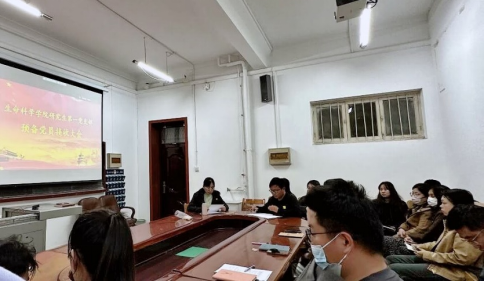 研究生第一党支部召开预备党员接收大会,讨论党员发展对象尹香玉、王希宝同志的入党问题。本次会议由研究生第一党支部书记燕艳同志主持,研究生第一党支部全体党员参加