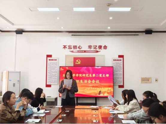 研究生第一党支部书记、副院长燕艳到会指导,会议由研究生第二党支部书记郭春晓主持,支部全体党员参加。