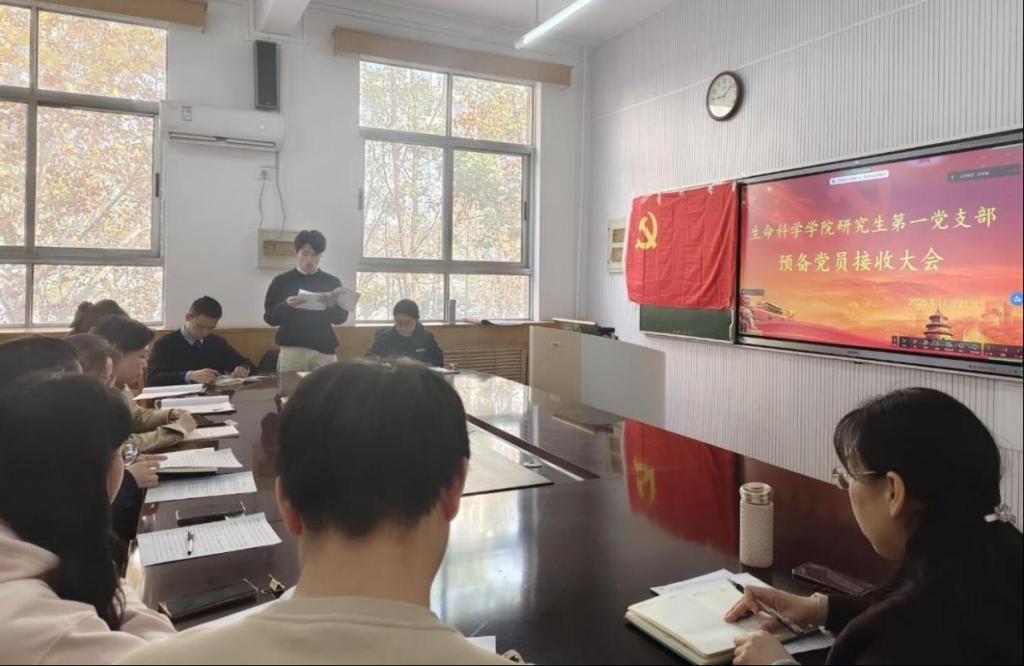 研究生第一党支部在生物楼223室召开党员大会接收预备党员。本次会议由党支部书记燕艳主持,党支部全体党员及发展对象参加。