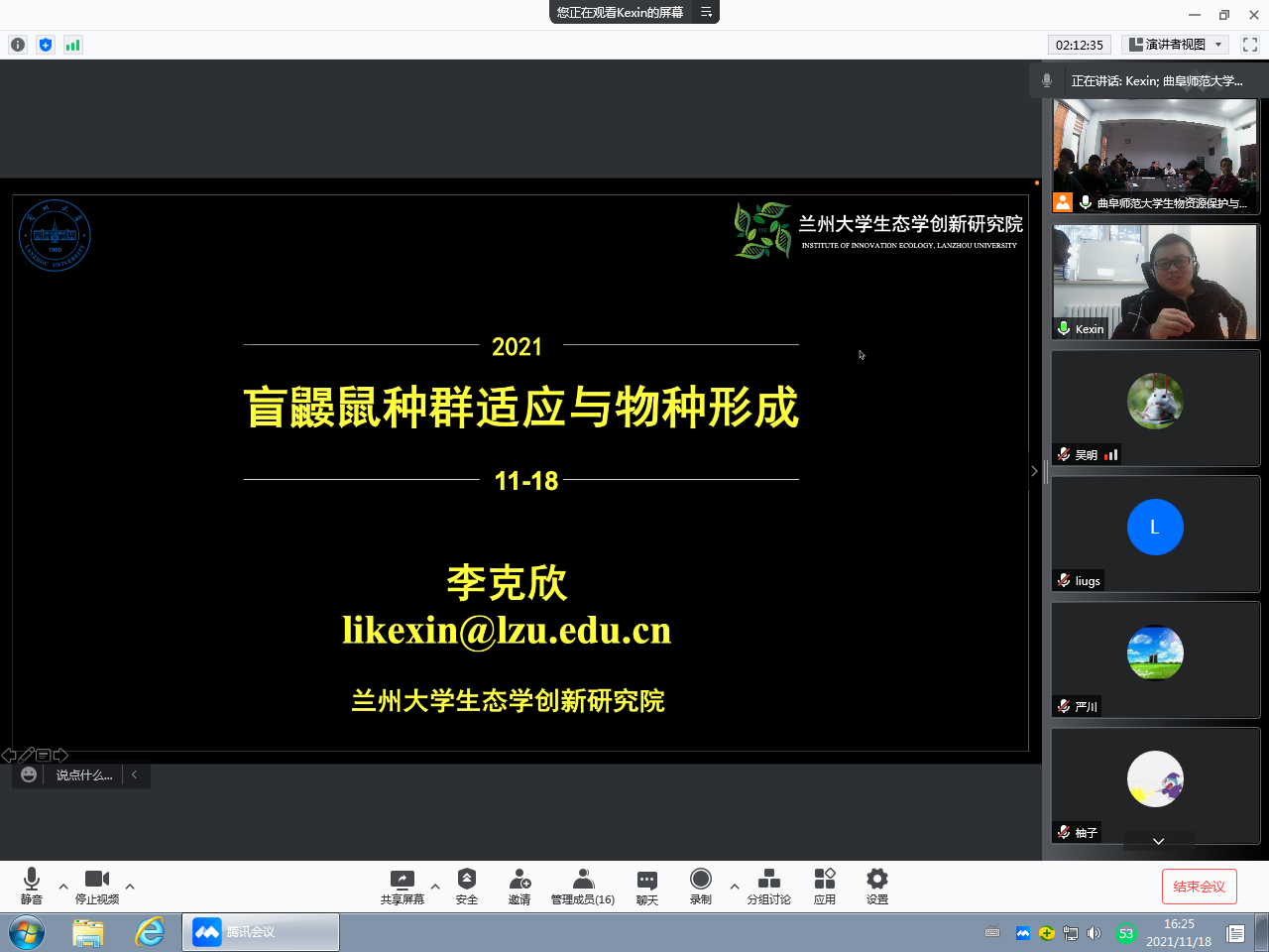 李克欣教授为大家做了题为《盲鼹鼠种群适应与物种形成》的报告,李教授团队通过对四种不同核型盲鼹鼠的比较基因组学研究,揭示了物种形成式样与分化时间,以及物种形成的原因等。