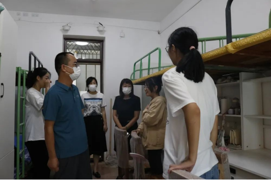 领导深入新生宿舍,检查住宿情况,与新同学亲切交谈,了解他们的家庭情况、入学报到和对学校生活环境适应的情况,希望他们能够尽快转变角色,有计划地安排大学生活,充分利用大学的各种学习资源,提升整体能力和自身综合素质,同时勉励大家要心怀远大理想、努力学习、在曲园成长成才。