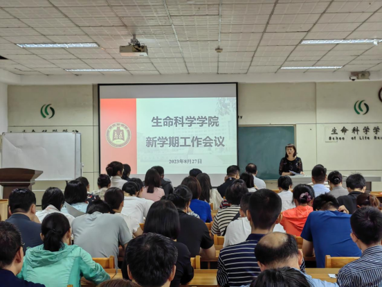 在生物楼232召开2023年秋季新学期工作会议。全体教师参加会议,会议由院党委副书记张明洁主持。
