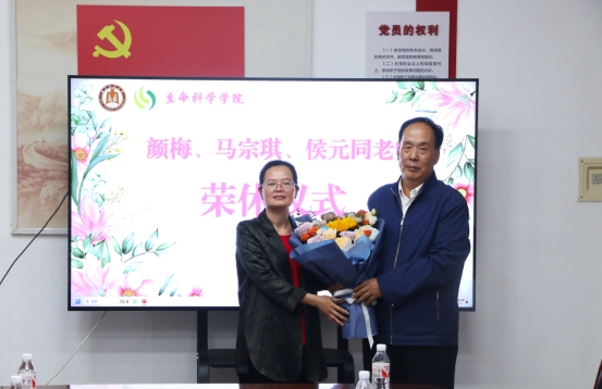 精心制作的纪念视频,贺秋红、星亚敏、刘柏玲作为教师代表依次向颜梅、马宗琪、侯元同三位老师献上了鲜花。随后,参会老师们逐一回忆了与老教师们相处的过往,表达了崇高的敬意和深深的祝福,纷纷表示将继承和发扬老教师们爱岗敬业、无私奉献的精神,牢记初心使命,潜心教书育人。