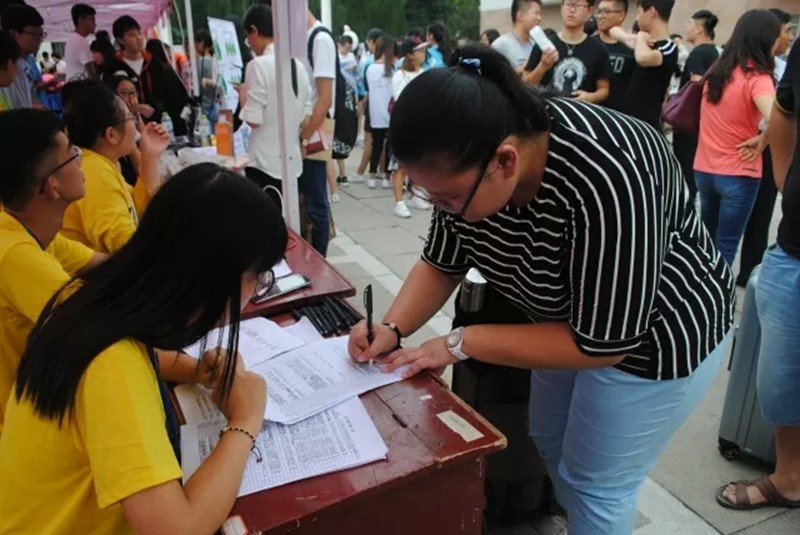 分别在生物楼大厅和孔子文化广场设立接待站。辅导员老师在暑假期间就通过网络等方式与绝大部分新生提前取得联系,提醒新生报到注意事项。新生到校后,只需到捷克论坛