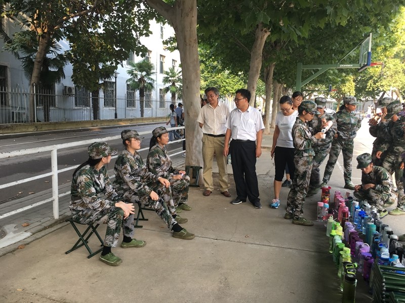 团委、学生会和辅导员助理们也尽职尽责,把热情和朝气带给17级新生,新生们以饱满的精神面貌和昂扬向上的积极态度将院领导和学生会的鼓励带到军训场地。