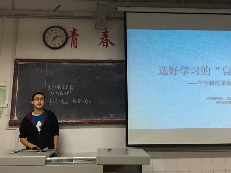会议初始,由学习部部长耿欣提出一些上课习惯问题,并提出不许逃课、恶意占座的要求,并倡导多开展参与经验交流会,希望各班可以加强养成良好的学习习惯的措施,形成浓厚的学习氛围。接下来由学生代表2015级生物技术班刘启腾同学围绕着选课管理、成绩绩点两个方面展开介绍,以便新生可以更好的融入大学生活,尽快适应大学的学习方式,调整好自己的学习计划。在本次会议的最后着重强调了诚信考试的问题,通过学习学校考试的相关要求及违纪处理规定,让同学们深刻认识到诚信应考的重要性,逐步建立诚信应考的理念,树立优良学风。