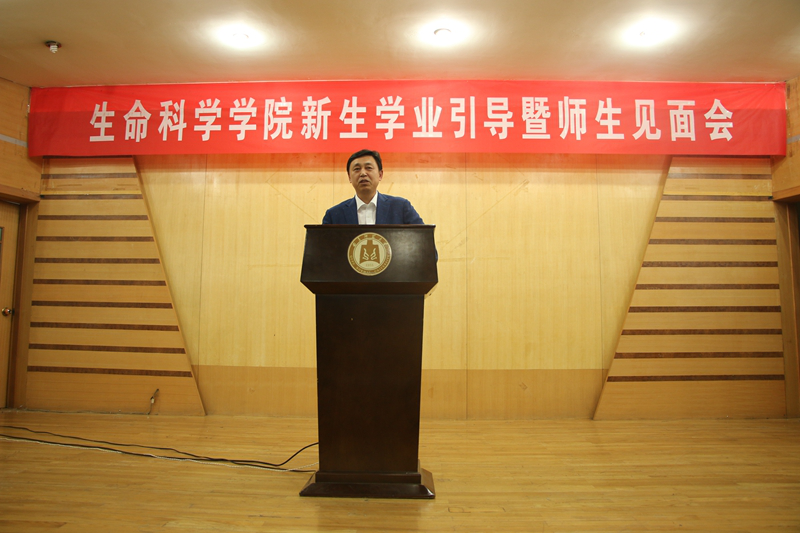 2017级新生辅导员赵强副书记主持。张洪海校长首先代表学校对同学们选择曲师大,选择生科院表示诚挚的欢迎,对大家能够考上曲师大,考进生科院表示热烈的祝贺。随后张校长以生物专家的视角,循序渐进的从生命科学的前沿进展、人类面临的许多全球性的难题、保护及修复生态环境、学科体系等多方位引导学生,培养探索生命科学的兴趣和热情。张校长以自己的求学经历,以优秀毕业生的奋斗历程,以生命科学巨匠们的成就,鼓励和激励学生们。在大学这个新起点上,张校长提出三点希望和建议:1.传承曲园优良的学风,把学习作为大学生活的中心 2.持续保持专业兴趣和对生命探索的热情勤奋笃学 3.志存高远。最后张校长衷心祝福同学们用最美的年华在最美的曲园成就最美的自己!