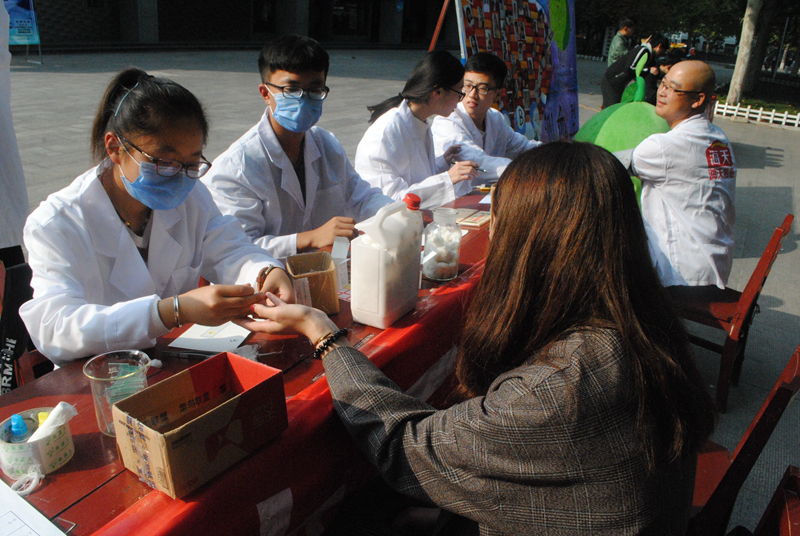 团委主办下顺利举行。本次活动在大学生活动中心和西公寓同时举行,旨在普及健康知识,提高同学们健康生活的意识,积极服务师生,为创建文明校园打好基础。广大师生和附近居民对此次活动热情高涨、积极参与。