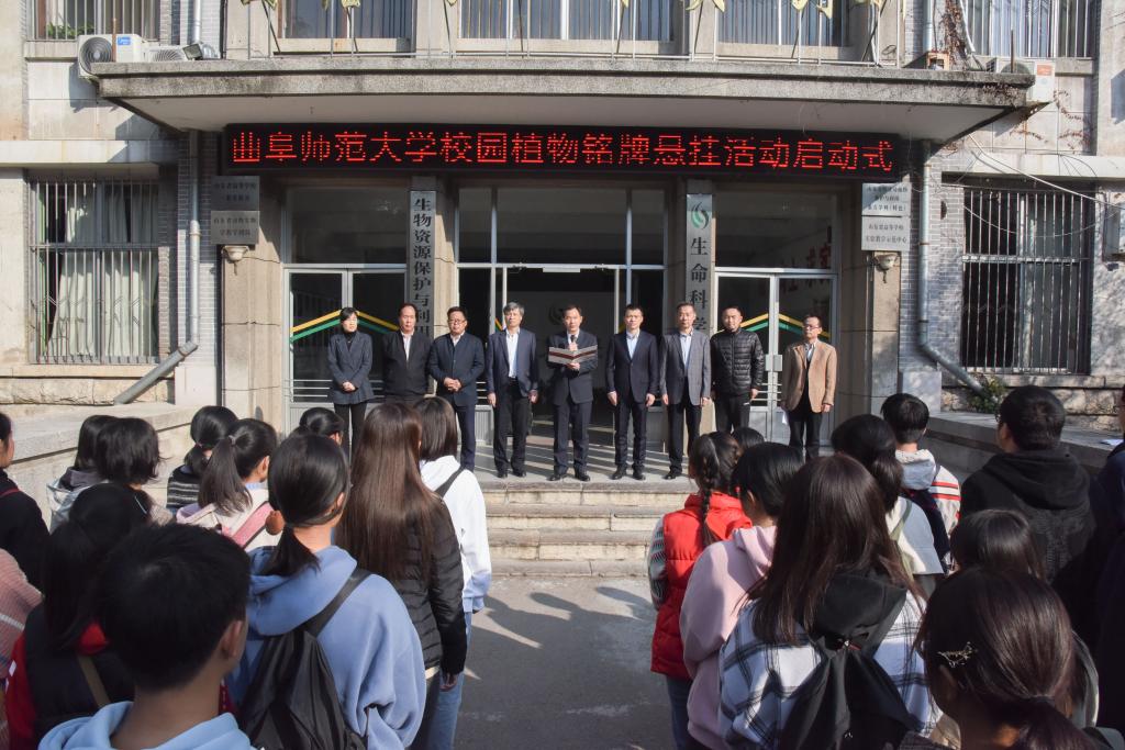 仪式上,辛杰和张隆海共同为铭牌悬挂揭牌。校工会主席王万民介绍了校园植物铭牌悬挂筹备、开展情况。