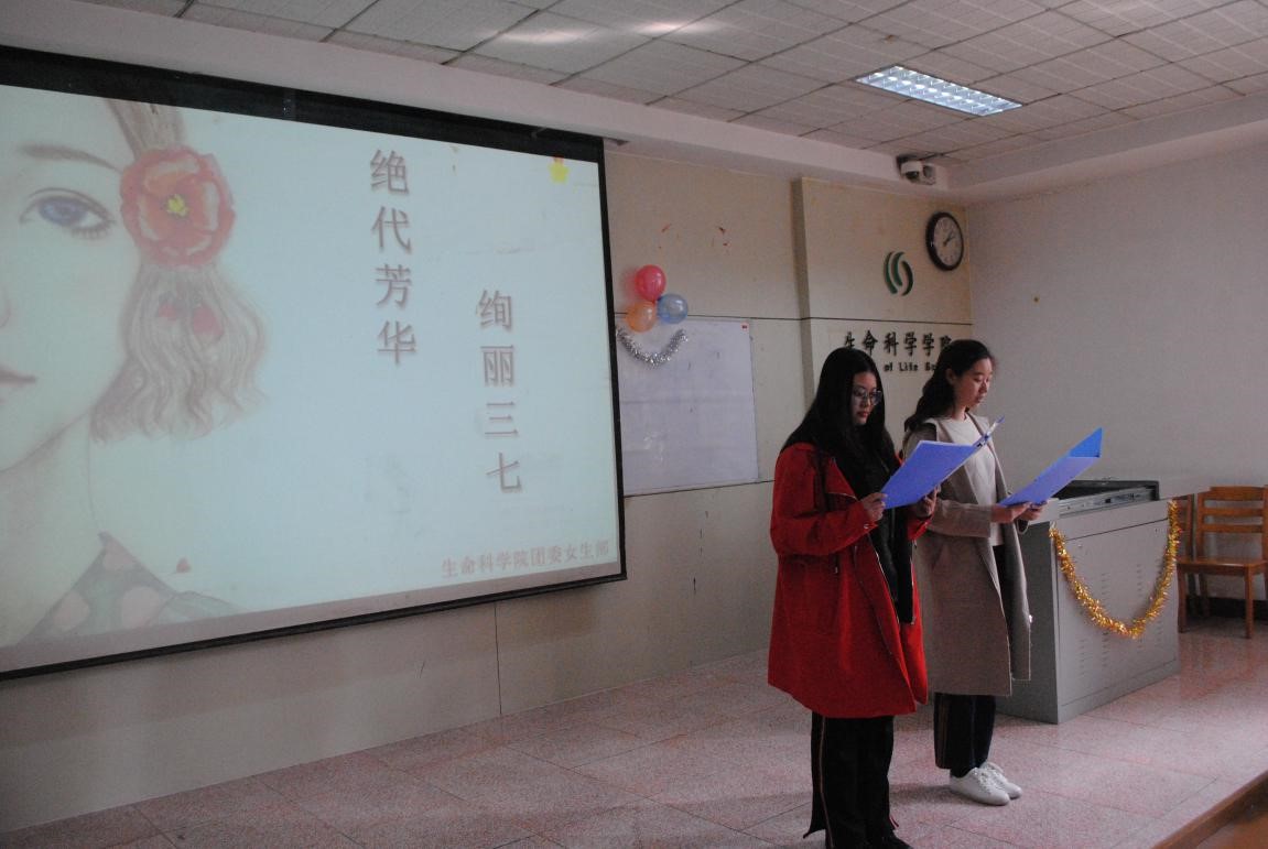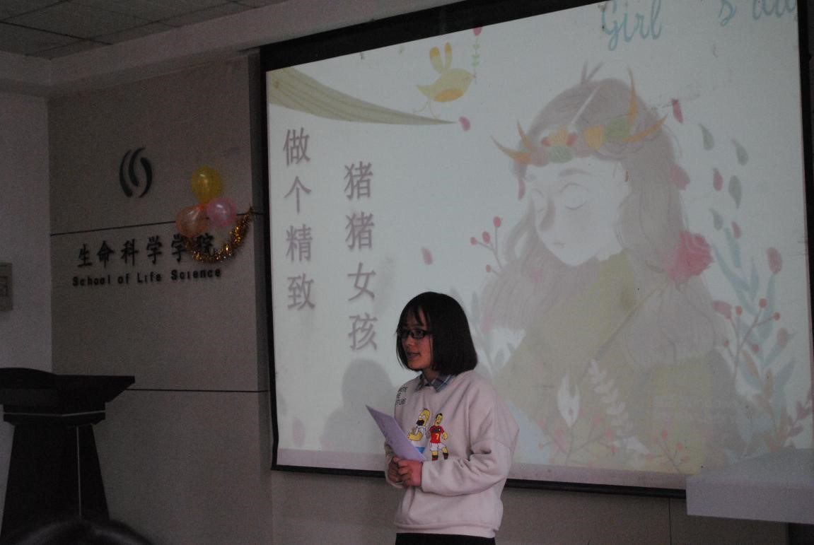 女生部在生物楼二楼多媒体教室进行“芳华绝代,绚丽三七”女生节活动。