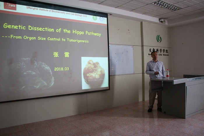 张雷研究员给大家讲解了Hippo信号通路与器官大小以及肿瘤发生的关系。他从分子、细胞和动物水平解析了Hippo等信号网络在调控细胞增殖、干细胞稳态与肿瘤发生中的功能及分子机制。报告认为,组织器官发育的大小最终取决于其组成细胞的数目、细胞大小及细胞间精确而复杂的排列组合,相关调控机制的异常将直接导致癌症等重大疾病的发生。张老师研究的Hippo信号通路是一条物种间高度保守的肿瘤抑制信号通路,是迄今被确认在调控器官发育大小、再生与重塑过程中起主导作用的信号通路。