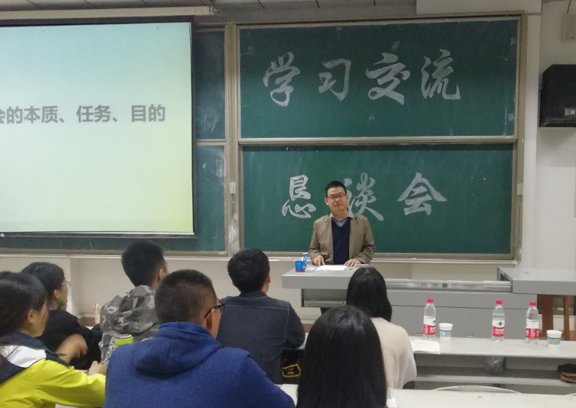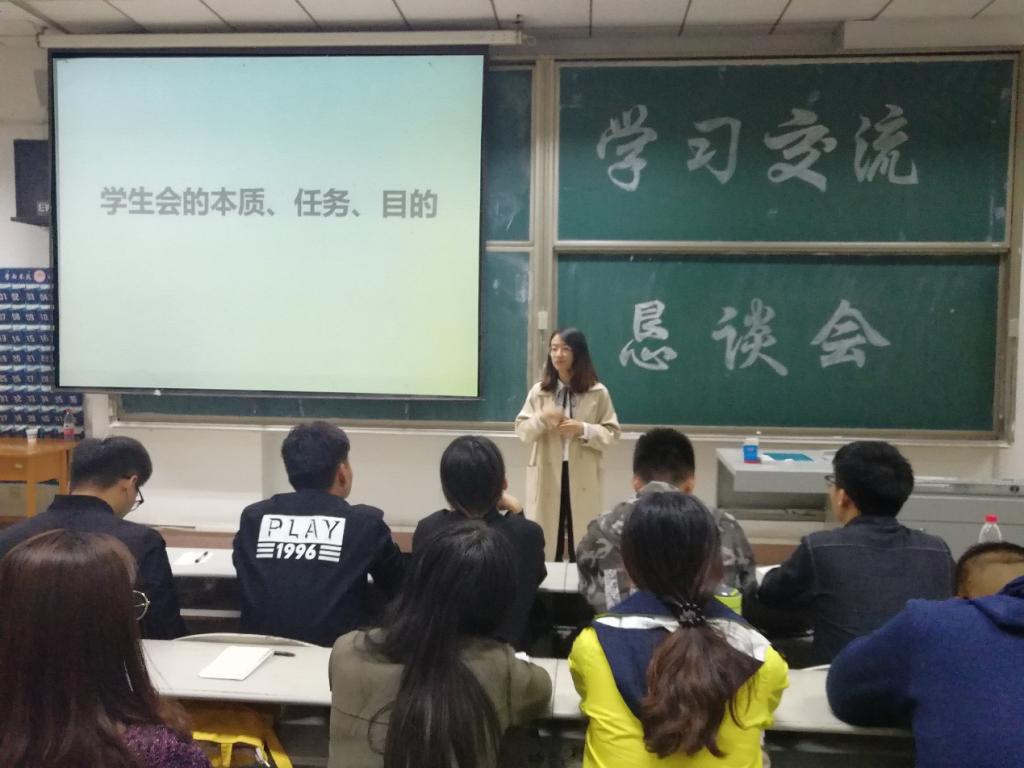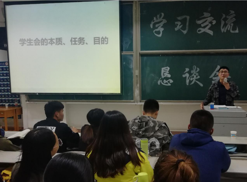 团委学生会于10月14日晚在综合楼206教室举行了学习交流恳谈会。会议特邀团委书记刘洪铎老师。优秀学生干部王婷婷同学,董欣同学以及马得耀同学进行讲演,2018届团委学生会成员参与了此次活动。