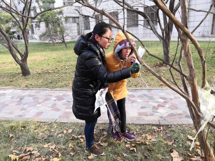 比赛伊始,主持人讲解比赛流程及比赛规则,十二组队伍分为前后两批,依次到指定的位置进行比赛。主持人刚一宣布比赛开始,各组的两名成员便像离弦的飞箭奔向地图上宝藏的所在点,脚步生风。寒风凛冽,却抵不过同学们寻找宝藏的热情,每个人的眼中都充满了对目的地的好奇和探究答案的迫不及待。随后,各组人员纷纷从宝藏点返回捷克论坛