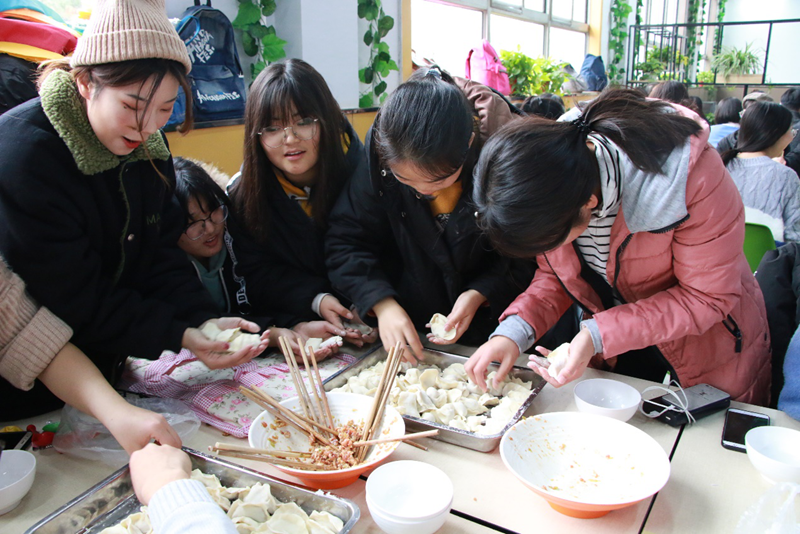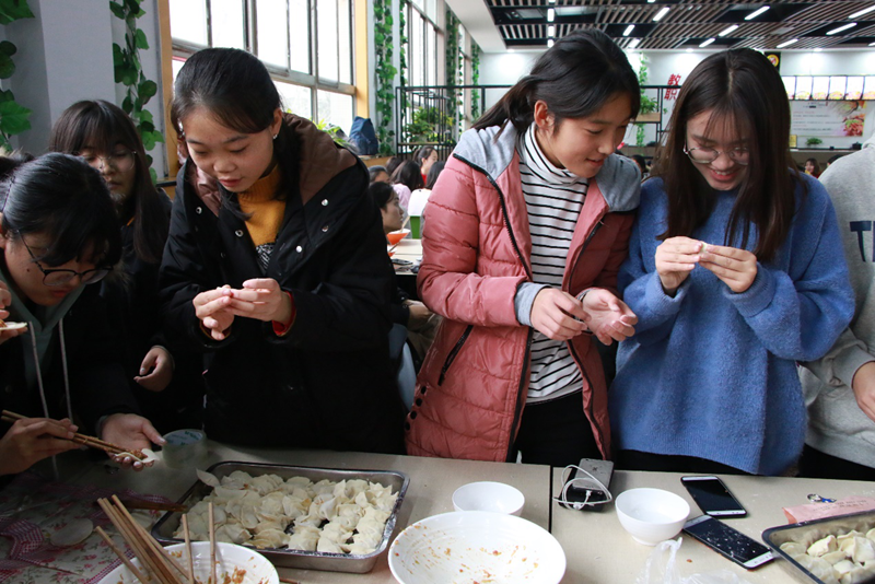 冬至又称“冬节”、“贺冬”,是华夏二十四节气之一,自古以来就有"十月一,冬至到,家家户户吃水饺。"的谚云传颂至今。水饺深受中国广大人民的喜爱,包饺子更是我国的传统习俗。我们作为当代新世纪的青年,弘扬中华民族传统文化是我们义不容辞的责任。在走秀环节中很多同学的衣服都运用了汉服或者各地域特色文化的元素,表现了同学们对传统文化节日的重视。