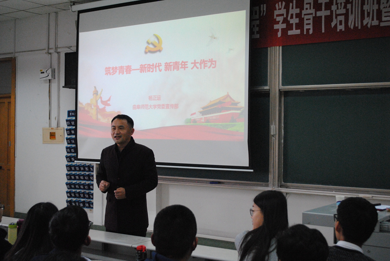 “青马工程”第一开讲人,紧扣党的十九大报告,从“速度豪迈—新时代、筑梦青春—大作为、犁牛之子—铸前程、珍惜韶华—行大道”四个方面深入浅出的讲述了中国共产党带领我们走向新时代的过程,同时从曲园的历史和曲园学子的精神与傲骨两个方面,就大学生如何更好适应新时代的发展,提出了要求和一些新的希望。他提出一个精神,两个意识和三个示范的观点。他指出学生骨干要有奉献精神,服务意识和创新意识以及成绩示范、能力示范和人格示范。同学们都认真倾听并做好笔记。