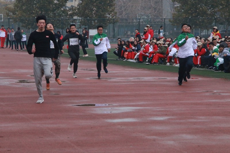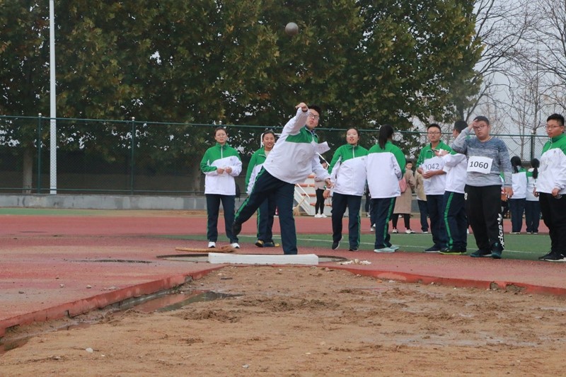 健康活泼的广场舞拉开序幕;裁判员代表以及运动员代表宣读了誓词。本次运动会比赛项目多种多样,有展现个人特长的百米赛跑、千米长跑,有考验力量的铅球比赛,也有体现合作精神的接力赛,还有彰显矫健身姿的跳远比赛……运动员们在场上奋力争先,努力拼搏,不断进取,超越以我,不仅锻炼和展示了自己优秀的身体素质,更体现了更高、更快、更强的体育精神及为集体争光的团队精神。在运动会过程中,各个运动员们不惧挑战,奋勇争先,秉持友谊第一,比赛第二的原则进行比赛;场下的观众情绪高涨,忍受着寒冷,不断的为自己的队伍加油打气。