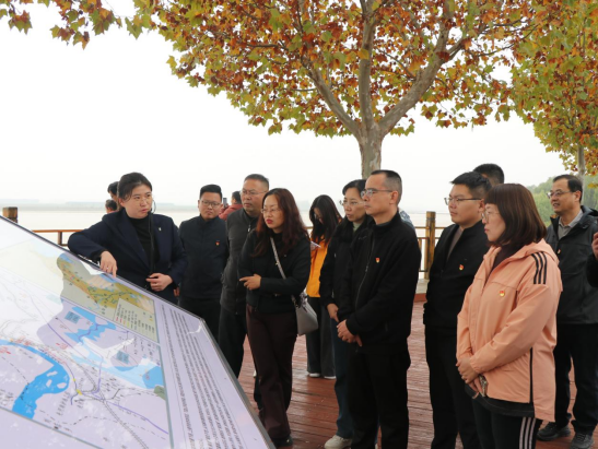 活动第二站,党员师生抵达黄河九曲十八弯的收官之处—东坝头黄河湾。师生们步入黄河治理展览馆,实地考察河道工程,系统学习人民治黄的历史经验与兰考生态保护的实践成果。昔日的盐碱沙荒地,如今已变成绿意盎然的生态示范区,成为践行生态文明理念的生动写照。