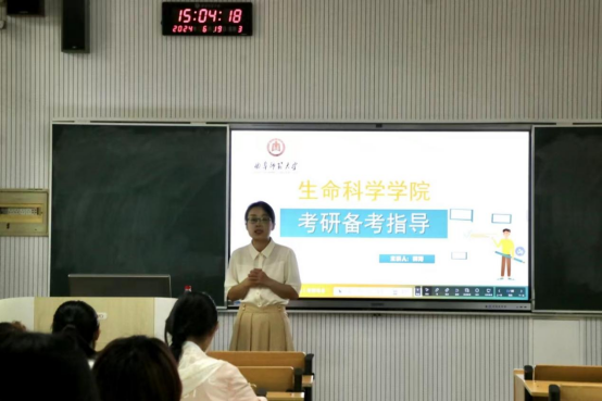 2022级本科生考研规划指导讲座在生物楼101教室顺利举行,此次活动由新东方考研指导老师郭涛主讲,2022级辅导员刘文静参加活动。