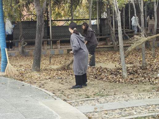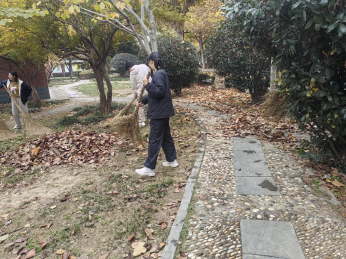 活动当日,同学们自行前往逵泉社区并在门口集合,组长认真清点人数。活动开始前半小时,志愿者与工作人员齐聚指定集合点,工作人员组织签到并进行简短有力的动员讲话与安全提醒。根据社区实际布局,参与者被合理分成若干小组,在工作人员带领下,志愿者们各司其职,分别对小区街道、公共区域的垃圾展开清理,清扫落叶、疏通沟渠等工作有序推进。清扫期间,大家分工清晰、配合默契,团队协作精神展露无遗。