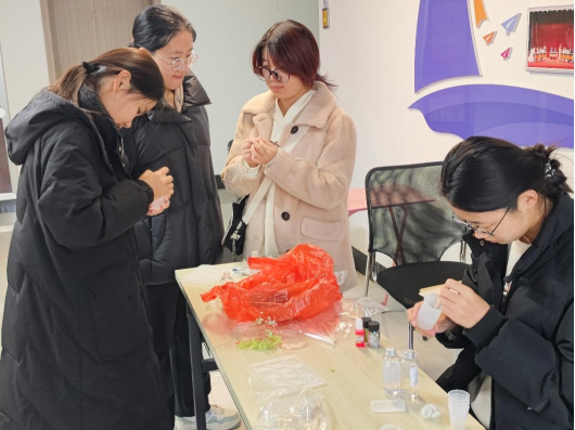 活动准备阶段,社团精心筹备,为参与者呈上了琳琅满目的材料宝库:滴胶、脱模模具、干花、落叶……活动伊始,社团讲解员为大家讲述滴胶的制作过程以及注意事项,随后,在师哥师姐们的指导下,社员们纷纷开启了属于自己的创意之旅。他们依照个人喜好构思样式,将晶莹剔透的滴胶缓缓倒入模具,再巧妙地嵌入不同的植物元素。制作过程中,讲解员为同学们一一解读手中的植物。活动结束时,每一位社员都得到了心仪的成品,也收获了对植物得全新理解。