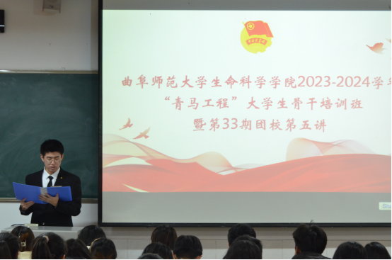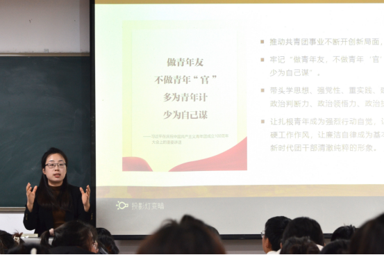 团委书记刘文静为“青马工程”大学生骨干培训班全体学员授课。