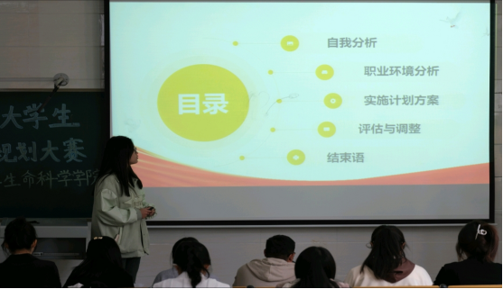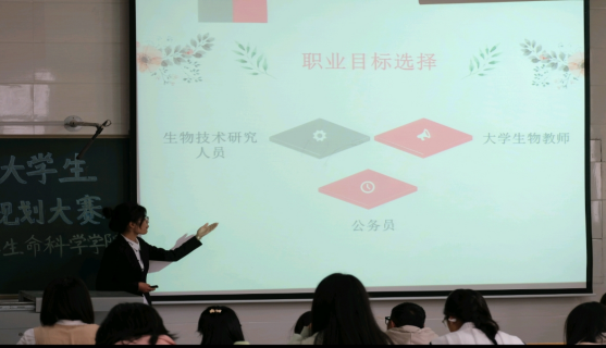 本次大学生职业规划大赛以增强大学生职业规划意识为目的,设置成长赛道和就业赛道。活动设置主持人开场环节、选手展示环节和评委问答环节,选手通过自我介绍及PPT展示阐述生涯职业规划,评委针对选手的规划进行相关提问并通过选手台上表现和回答情况进行评分,按照评分高低评选出一等奖、二等奖、三等奖。