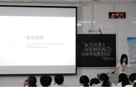 活动伊始,由主持人组织会议成员进入教室并进行签到,随后主持人简单介绍了社会实践的重要意义。接下来由社会实践部各位副部长及干事清晰地介绍了社会实践的基本流程与有关时间安排、青鸟计划、暑假三下乡实践特殊之处以及中青校园的使用,使同学们对社会实践有了初步的认识。其中有关社会实践活动的相关介绍,包括组建团队、确立主题、重点团队申请、制订计划、开展实践活动、撰写实践报告、答辩和评选八个环节的详细介绍,帮助2023级学生明确了实践的流程。最后由社会实践经验丰富、多次参加社会实践的先进个人分享了社会实践投稿经验、队长经验、青鸟计划经验等。帮助2023级同学全面的了解社会实践全过程,解答了社会实践过程中可能出现的问题,确保捷克论坛
