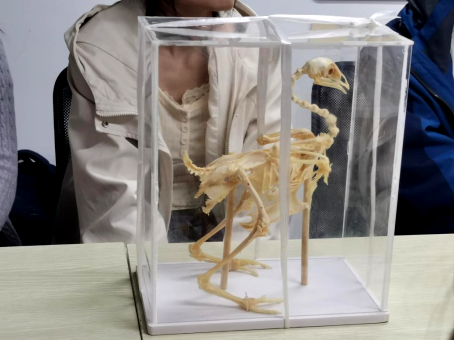 活动伊始,志愿者通过图片找茬、鸟鸣识别和提问互动等形式向同学们普及了鸟类知识,介绍了校园常见的鸟类以及济宁市周边常见水鸟。同时,他们还详细讲解了鸟类的生活习性、迁徙规律以及保护鸟类的重要性,引领同学们一同探索鸟类世界的奥秘。此外,志愿者们向同学们展示了鸟类标本并详细讲解了其中的结构,同学们近距离观察和学习鸟类的生理结构并进一步加深了对鸟类生物学特性的理解。
