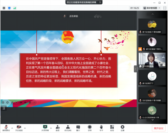 积极开展党的二十大报告学习研讨活动。团委、学生会各部门成员,各社团社长,各年级班长、团支书参与了此次学习研讨活动。
