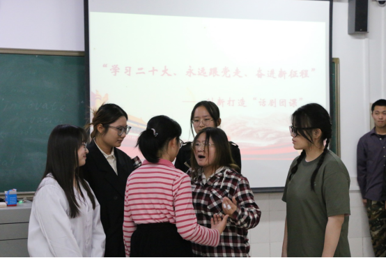 团委、学生会文艺部举办了“学习二十大,永远跟党走,奋进新征程”话剧团课活动,团委及学生会主要负责人担任评委。